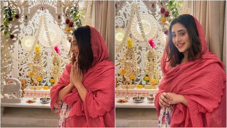 In viral pictures, Shivangi Joshi was seen worshiping Lord Krishna and Radha Rani. In these viral photos, the actress is seen in a very simple style.