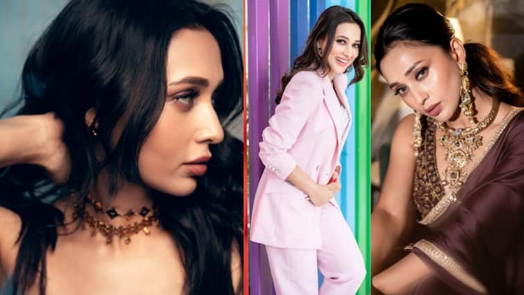 This look of mm is quite cool. He is wearing a pink-orange shade wide pants with a red crop top which is offering modern and trendy vibe. Open wavy hair and light makeup are making their look fresh and glamorous.