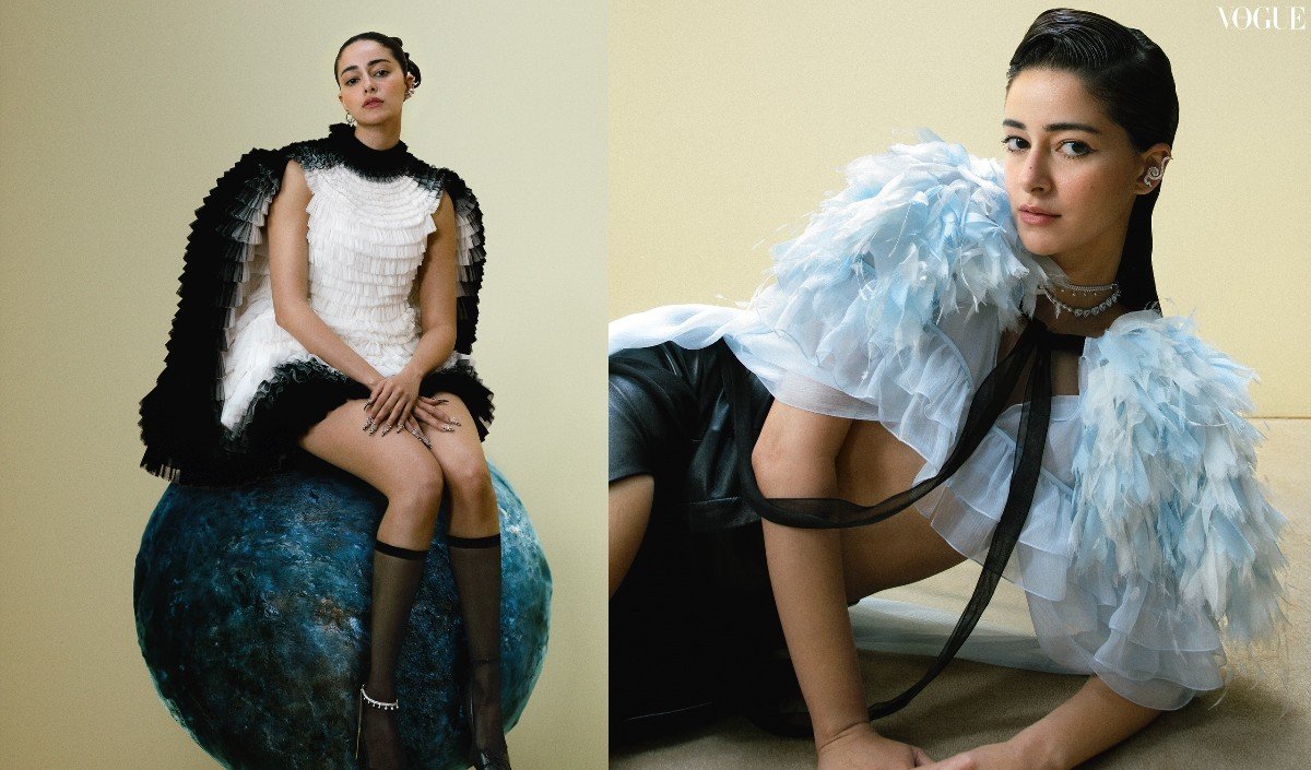 For her beautiful look, Ananya highlighted her cheekbones with Shimri highlighter and soft blush. Her eye makeup had thin eyelids, winged eyeliner and micro brown tones, while nude lips completed the polish finish. She looked like a modern fashion icon in every way by style in her hair a sleek, side-parted ponytail.