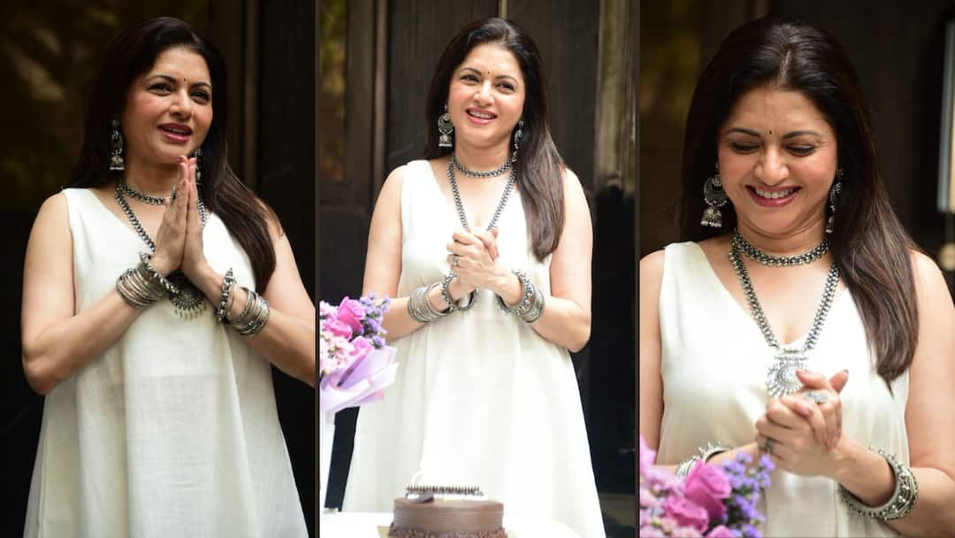 Bhagyashree wreaked havoc in off-white dress, actress seen celebrating birthday with paparazzi