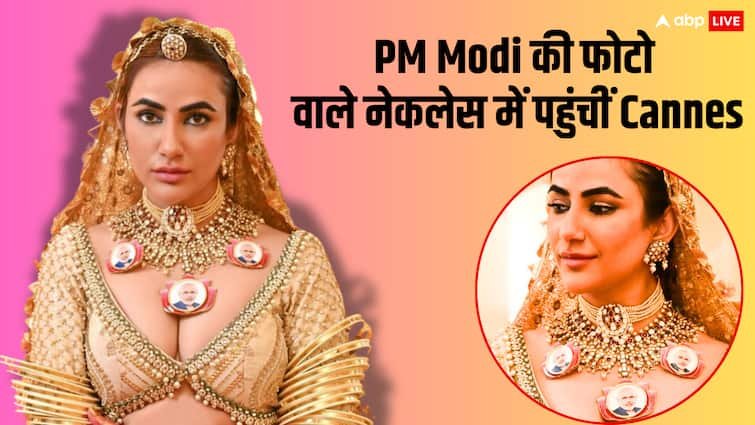 Miss Haryana 2023 Ruchi arrived at Cannes’s red carpet with a Rajasthani bride look. During this time, everyone’s attention went to his customized necklace in which three photos of PM Modi were taken.